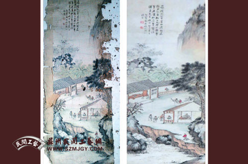苏裱 >> 《清代、胡振山水画修复前后》